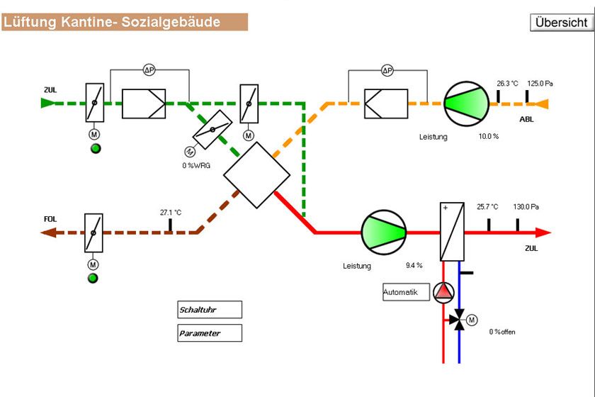 By using function blocks and finished programs a complete ventilation system can be programmed within a very short time.