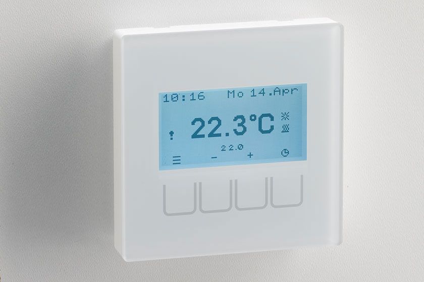 Das Bedienteil mit integriertem Raumtemperaturfühler ermöglicht die Bedienung der Heizung und zeigt den aktuellen Betriebszustand. Zusätzlich können alle Messwerte der Steuerung angezeigt werden. Das Bedienteil verfügt über ein Grafikdisplay und kapazitive Tasten hinter einer Plexiglasfront. Es wird über ein 4-poliges Buskabel mit der Steuerung verbunden und von dieser mit Strom versorgt.Zubehör