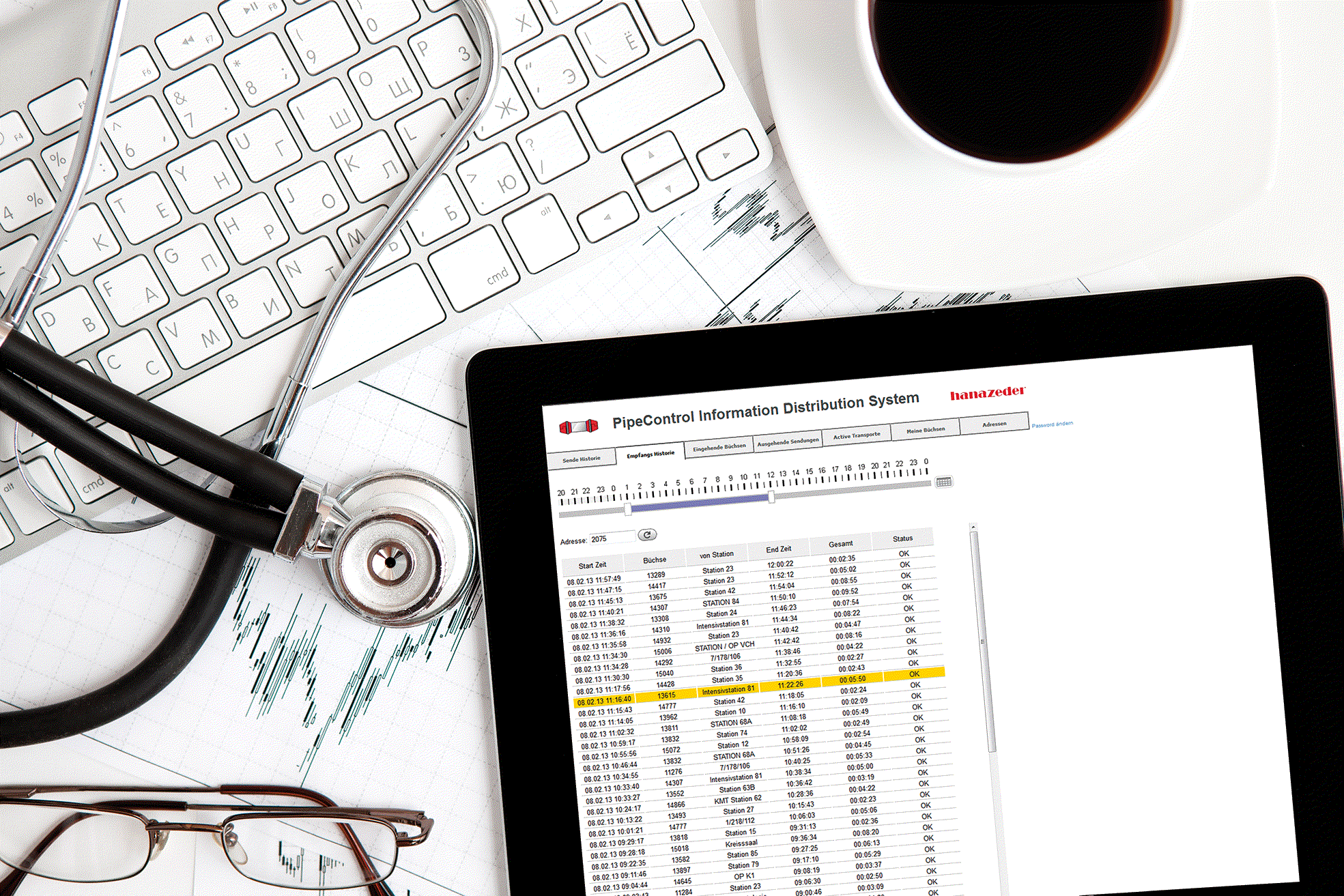 Grafische und tabellarische Übersicht über die gesamte Transportstatistik. Der Statistikzeitraum kann individuell definiert werden - täglich, monatlich, jährlich oder spezielle Tage. Hierdurch erkennen Sie auf einen Blick wie die Rohrpost Ihren Alltag erleichtert.