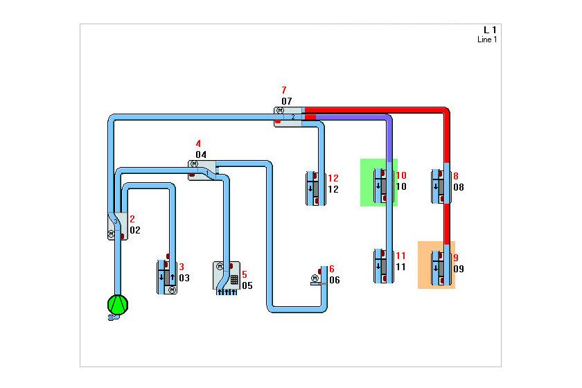 Die grafische Visualisierung stellt das gesamte Rohrpostsystem in Echtzeit dar.