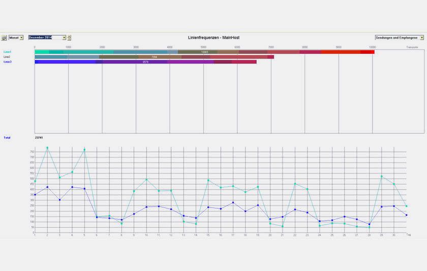 Grafische und tabellarische Übersicht über die gesamte Transportstatistik. Der Statistikzeitraum kann individuell definiert werden - täglich, monatlich, jährlich oder spezielle Tage. Hierdurch erkennen Sie auf einen Blick wie die Rohrpost Ihren Alltag erleichtert.